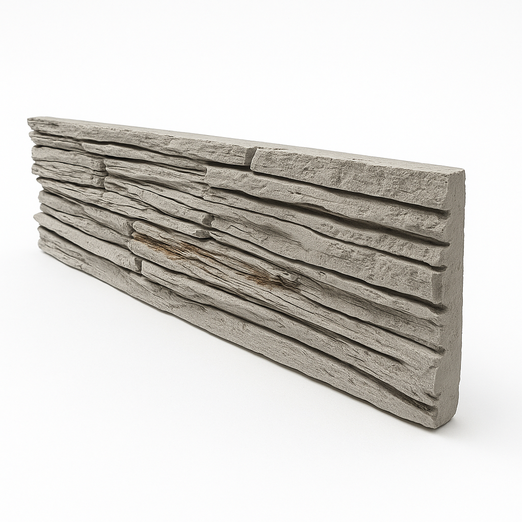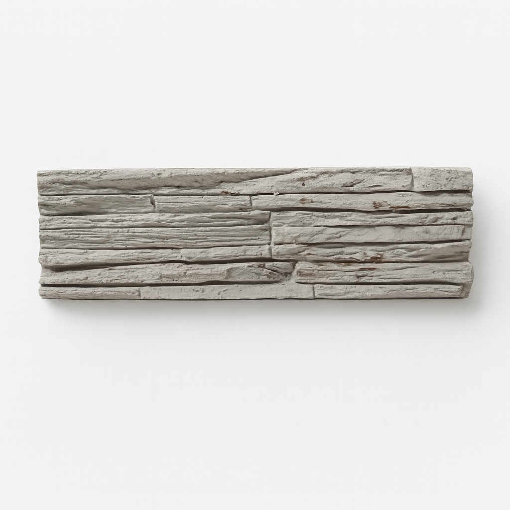Placa antihumedad decorativa de yeso modelo Piedra Ushuaia. Su diseño imita la textura natural de la piedra patagónica, aportando un estilo rústico y elegante a cualquier ambiente mientras elimina la humedad de forma efectiva y permanente.